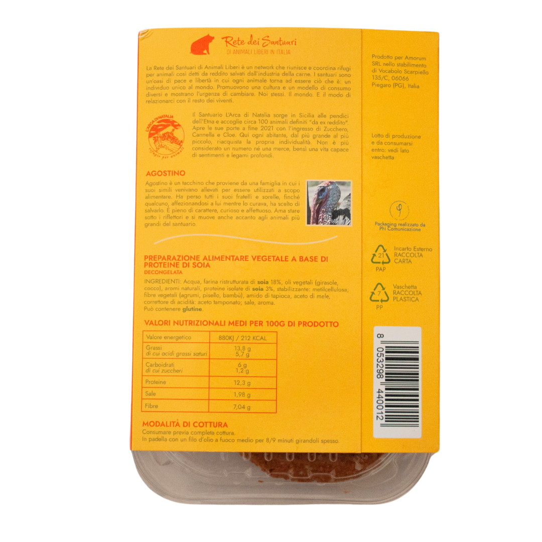 Il Burger è dedicato al rifugio L’arca di Natalia e al meraviglioso tacchino Agostino. Scopri la storia del santuario e dei suoi animali.